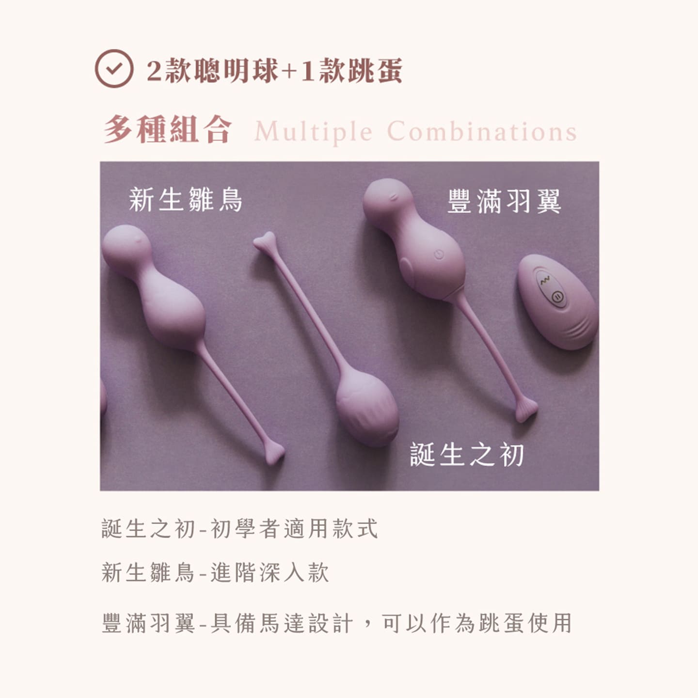 內含不同重量及尺寸的凱格爾球,以及遙控跳蛋款?