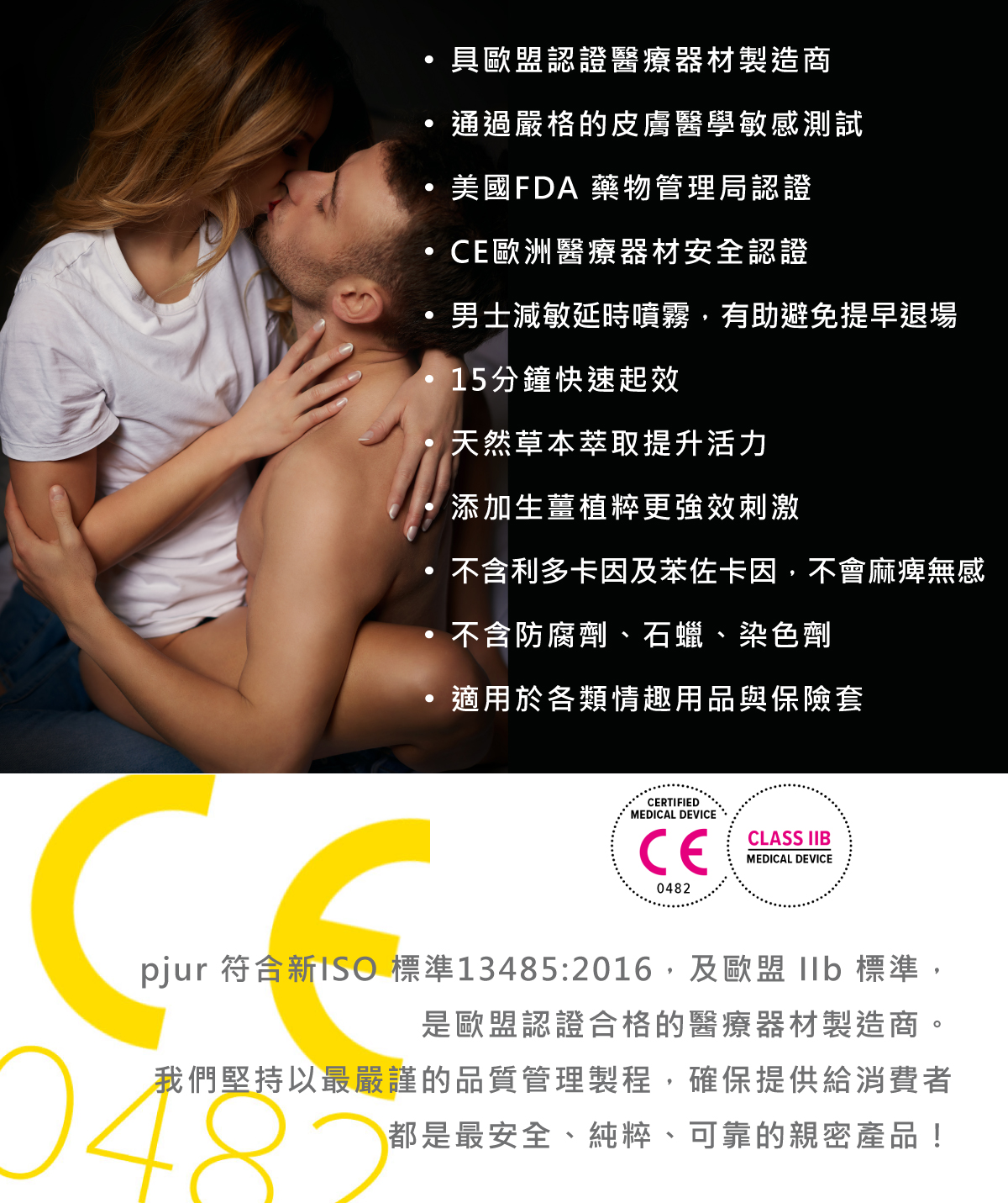 其天然活性成分,可降低皮膚過度敏感,不致麻痺無感,有助避免提早退場。不含利多卡因和苯佐卡因等麻藥成分,不會積聚於體內,絕對安全。15分鐘快速起效,無需等待,迅速滲透表皮並吸收。