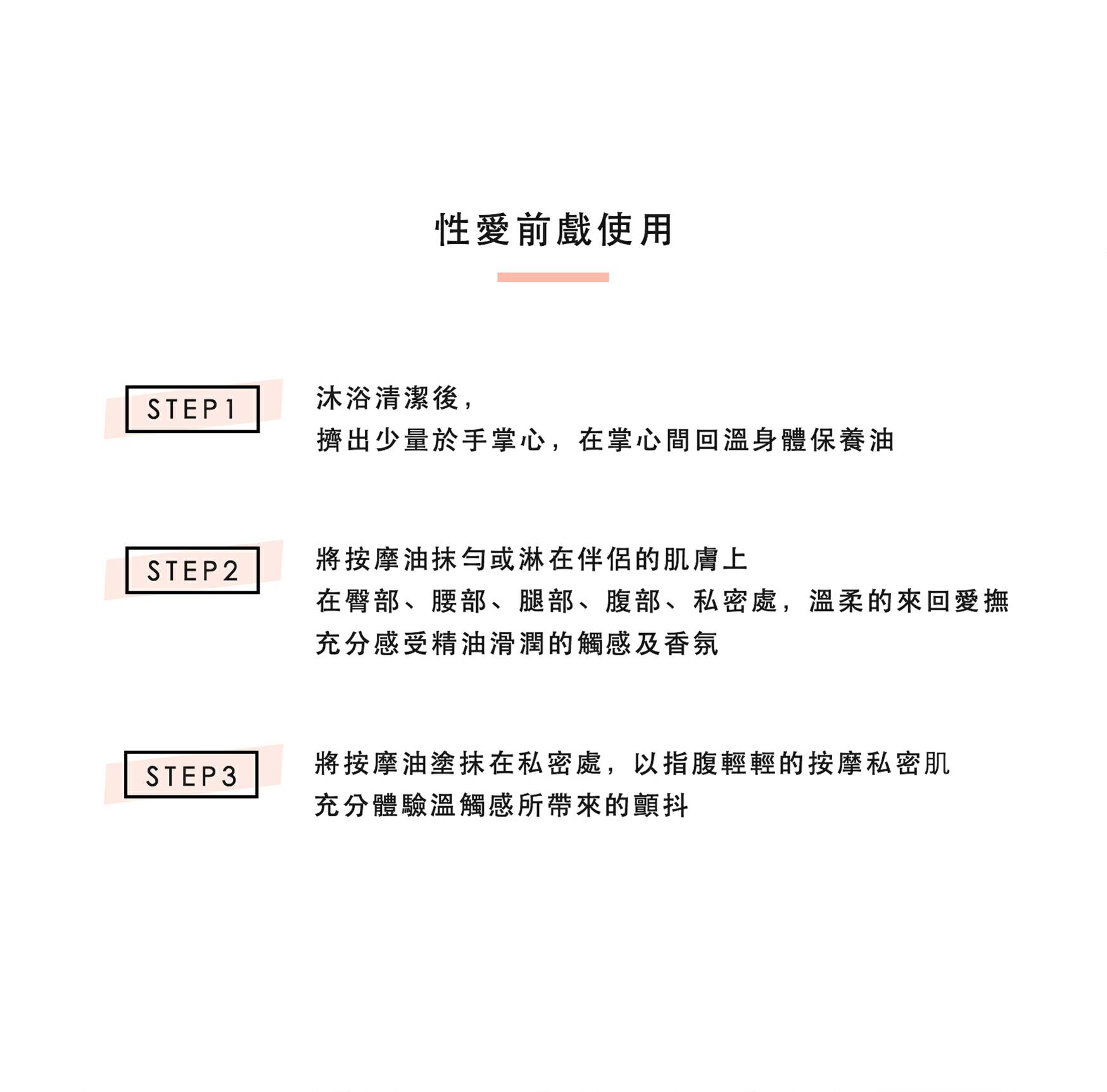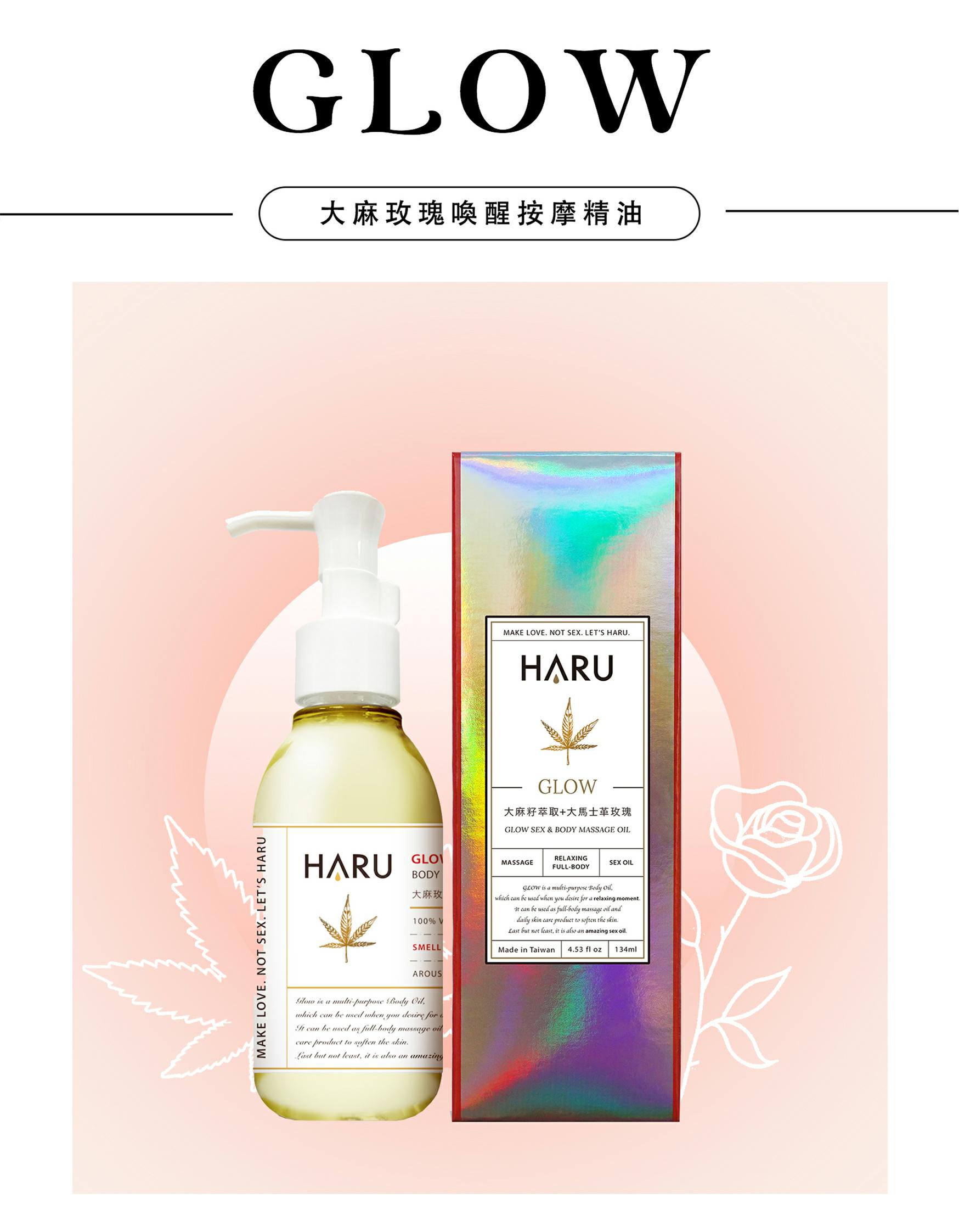 用途:HARU GLOW 是款全方位按摩及身體保養油,適合情侶按摩,日常肌膚保養及前戲性愛時使用