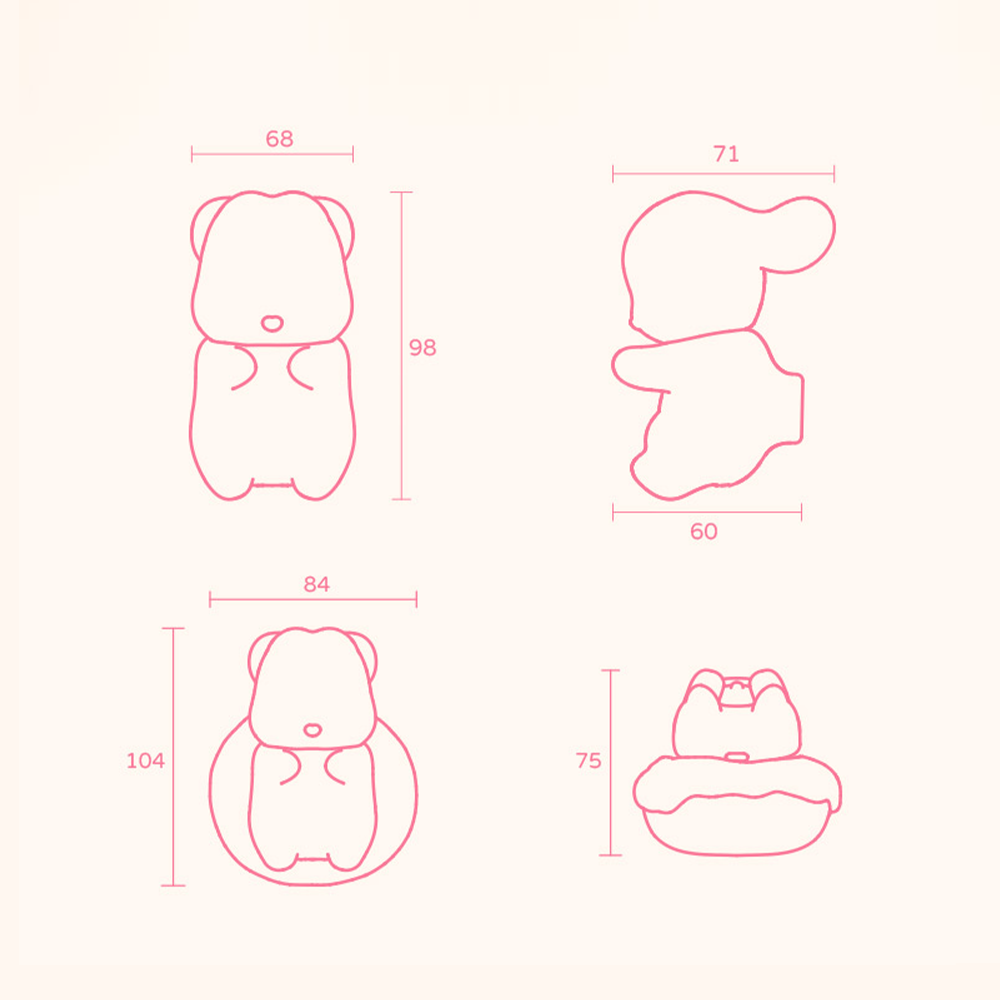 - 蛋糕底座*:精心設計的兔兔窩蛋糕底座,既可愛又實用,便於存放並保護玩具。