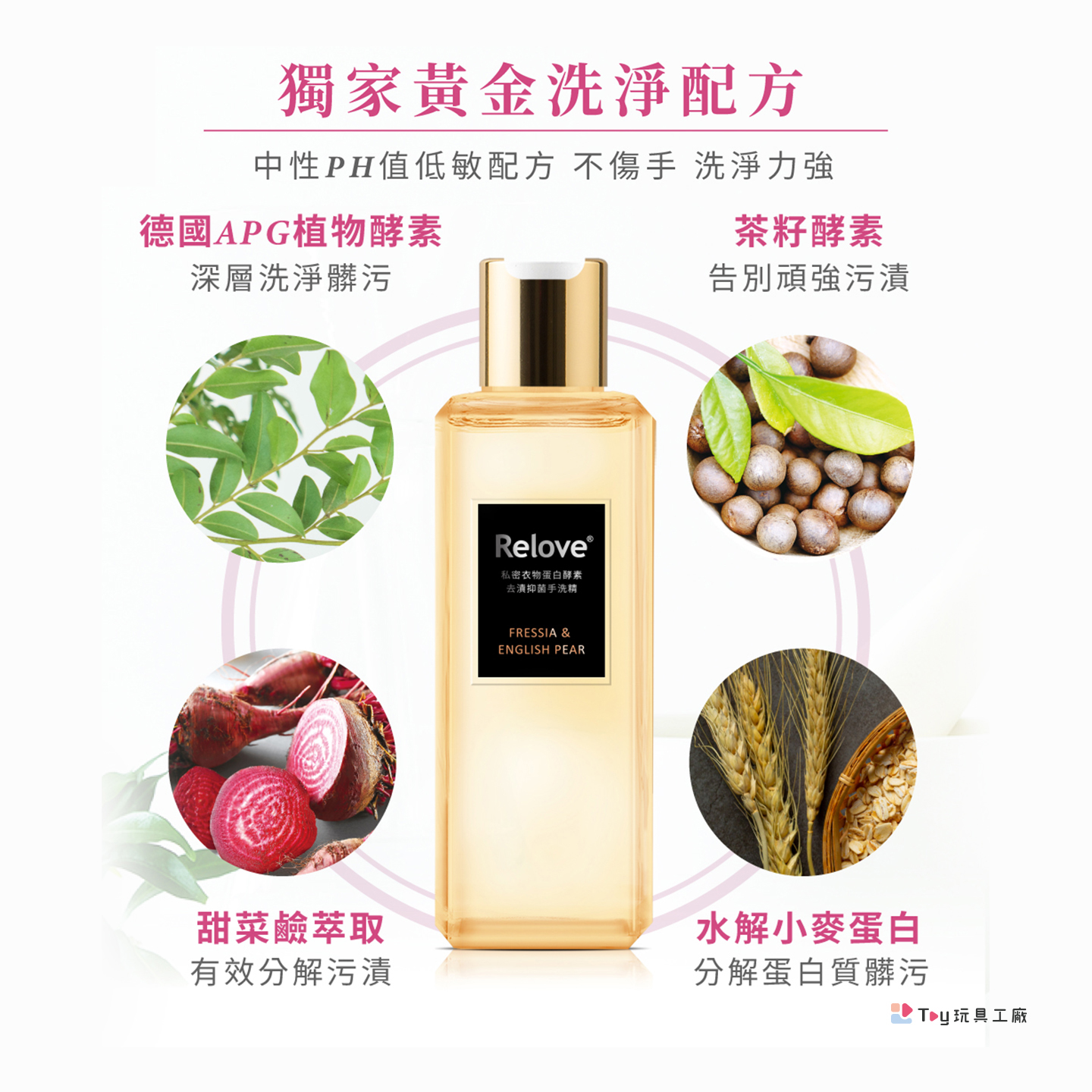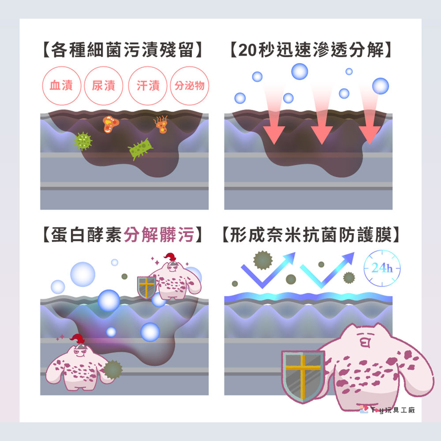 ●獨家英國專利蛋白酵素,瓦解髒汙