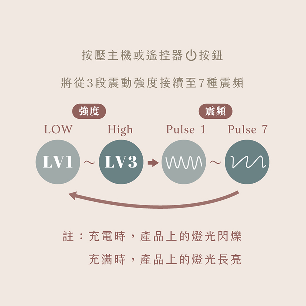 使用方式:使用前請將商品充飽電後開啟電源於適當處進行按摩