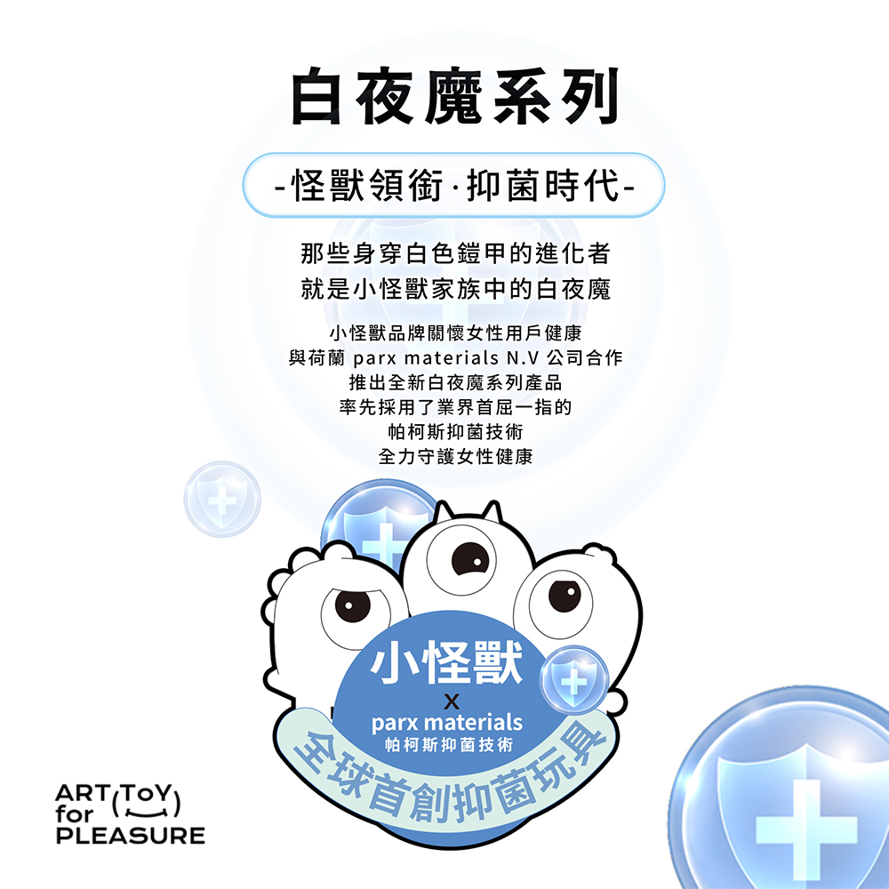 - 怪獸領銜 · 抑菌時代 -「那些身穿白色鎧甲的進化者,就是小怪獸家族中的白夜魔。」小怪獸品牌關懷女性用戶健康,與荷蘭 parx materials N.V 公司合作,推出全新白夜魔系列產品,率先採用了業界首屈一指的帕柯斯抑菌技術,全力守護女性健康。