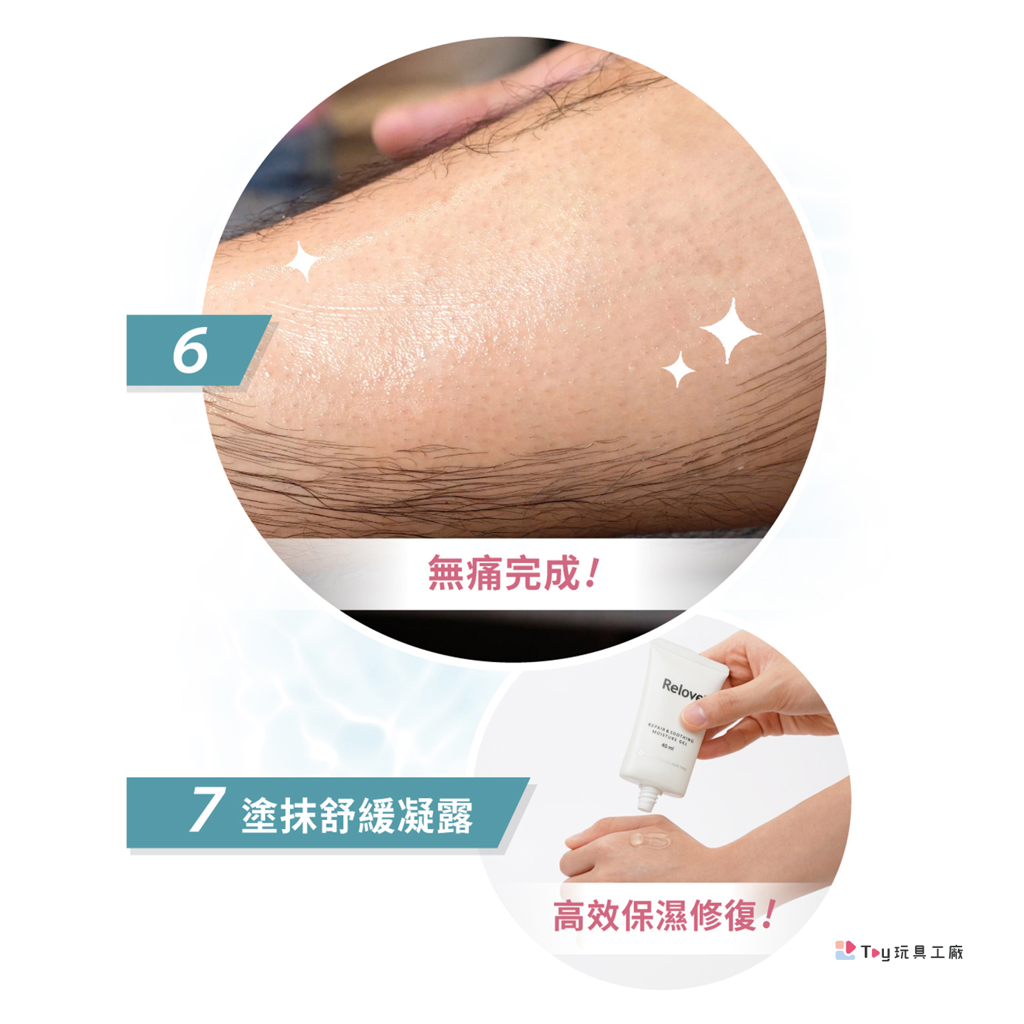 步驟五:於沐浴完且擦乾後使用舒潤高效凝露塗抹於使用Ku溜零毛髮霜的部位,達到收斂毛孔.柔嫩肌膚。