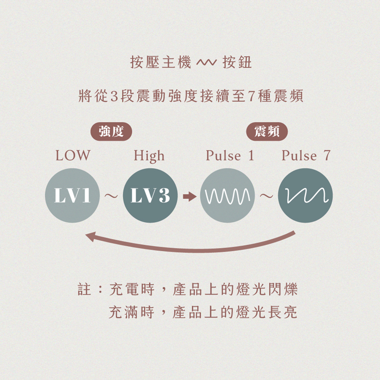 使用方式:使用前請將商品充飽電後開啟電源於適當處進行按摩
