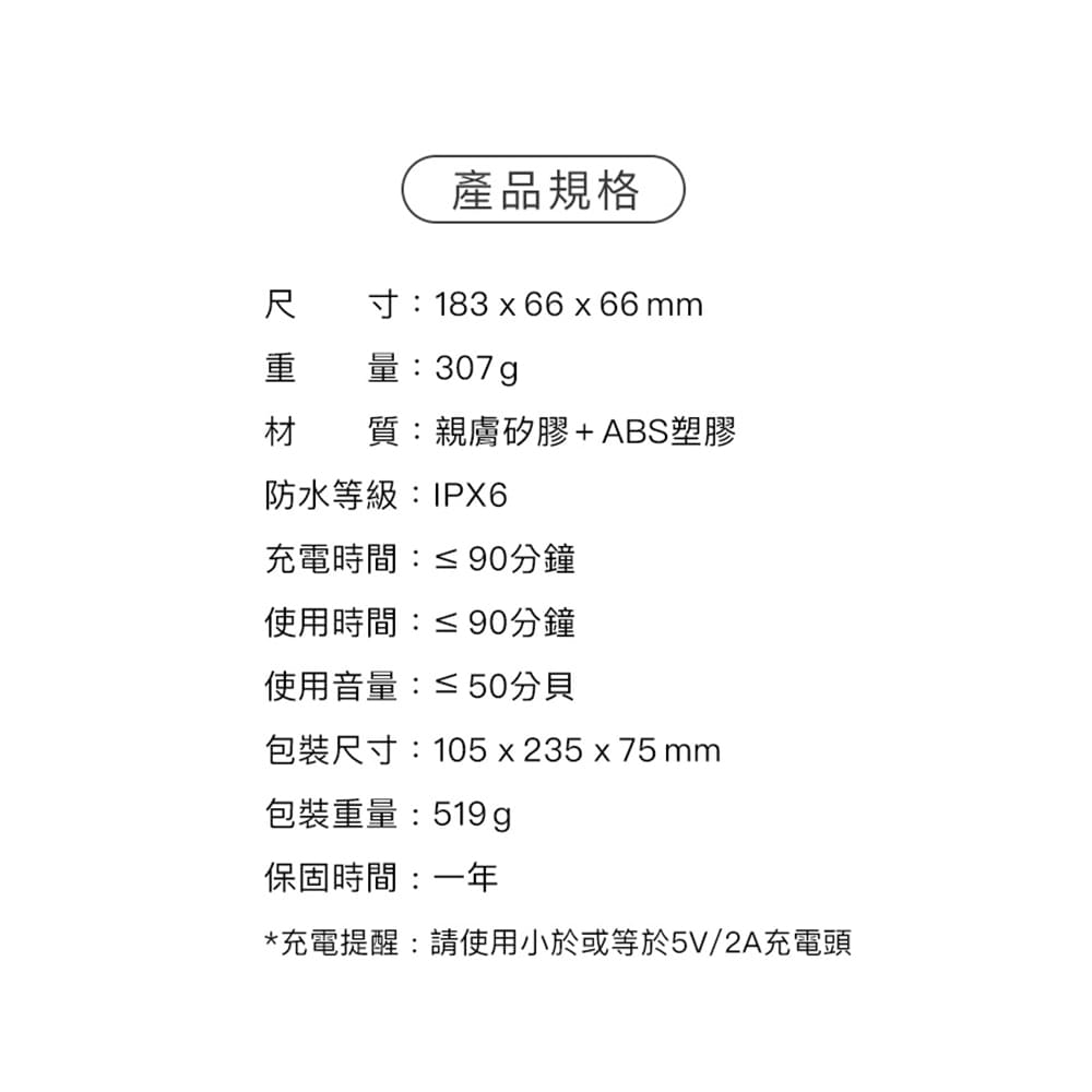 *充電提醒:請使用小於或等於5V/2A充電頭