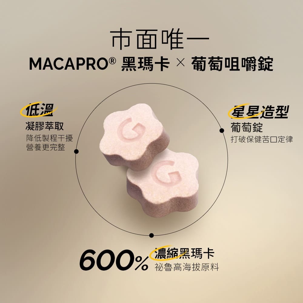 市售第一款瑪卡成分咀嚼錠,葡萄口味好入口