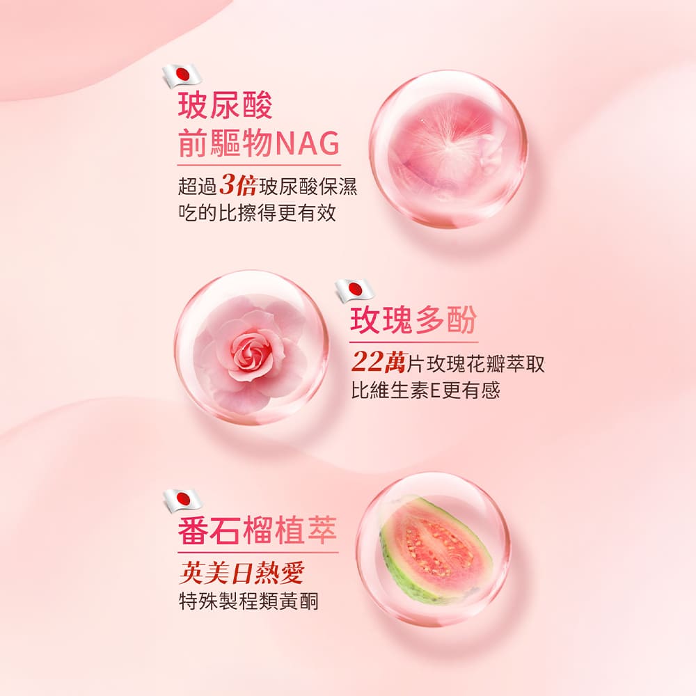 注意事項:本產品含『日本專利玻尿酸前驅物NAG』素食者勿食用 ,孕婦及特殊疾病者食用前請先諮詢專業醫師。