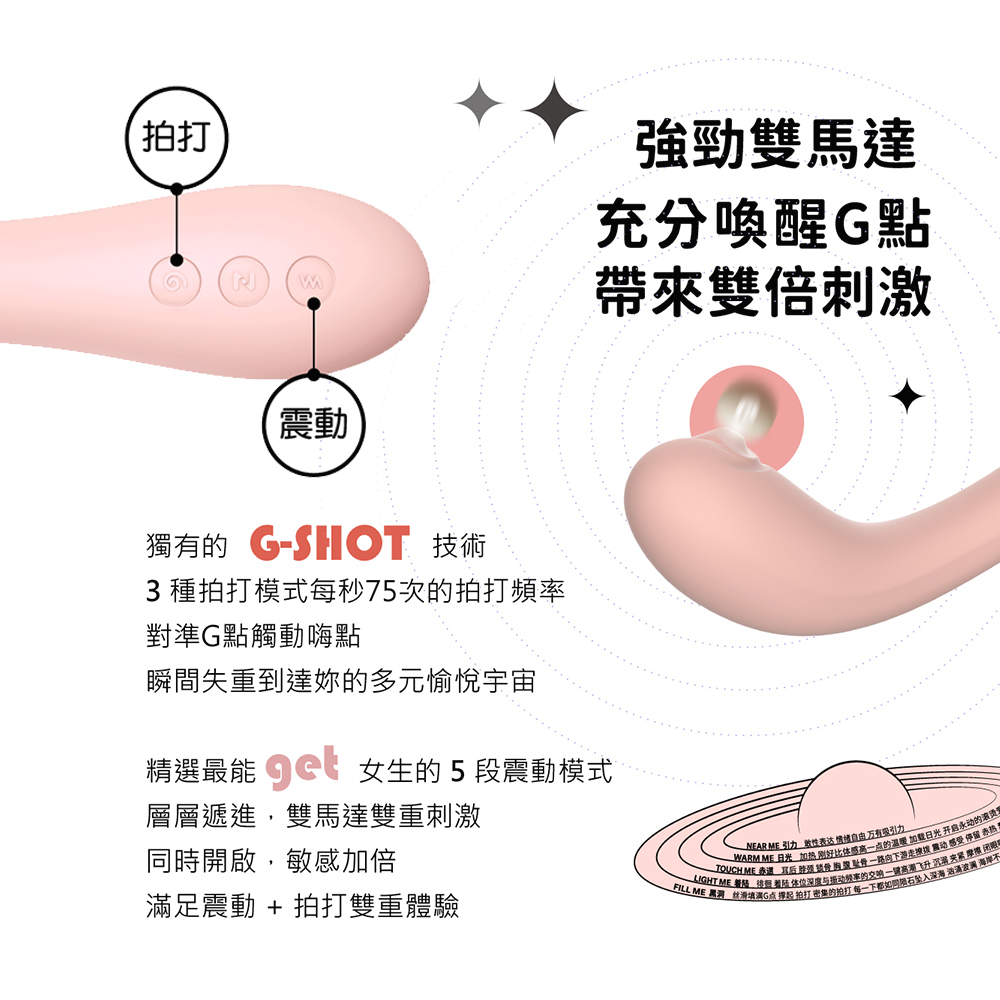 ✦Z 曲線人體工學 ✦G-SHOT拍打 ✦雙馬達雙重刺激