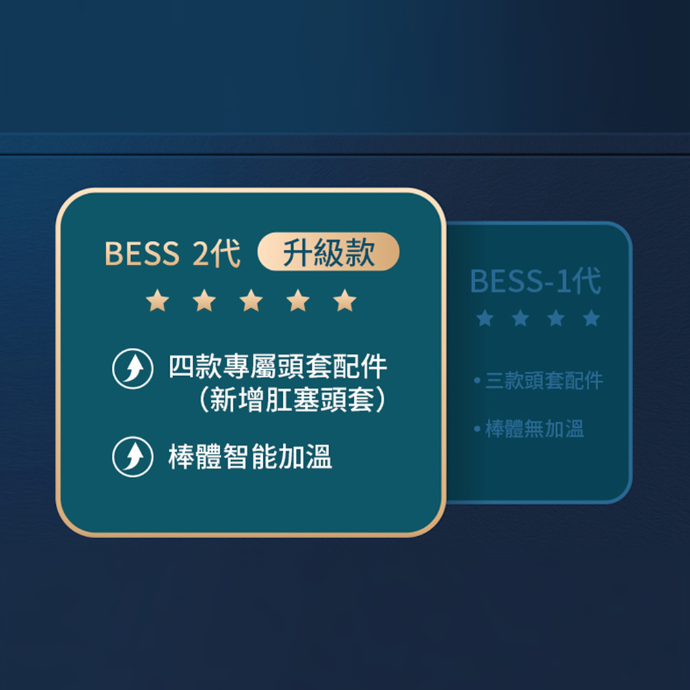 繼第一代 Bess 之後,這款第二代 Bess 陰蒂按摩棒變得更好了! 增加了肛門珠附件和加熱功能,將感官提升到一個新的水平。 Bess 2 帶有多個頭部附件,無論您是在尋找精確的刺激或 G 點瞄準,還是在內部的任何地方,都可提供定制的樂趣。 Bess 2 憑藉其創新的 DirectPower 技術給您最有針對性的刺激。 其強大的振動融入精確的設計中,使您能夠專注於敏感的性感區域。 Bess 2 的電機轉速高達每分鐘 10,000 次,帶來極速高潮效果!